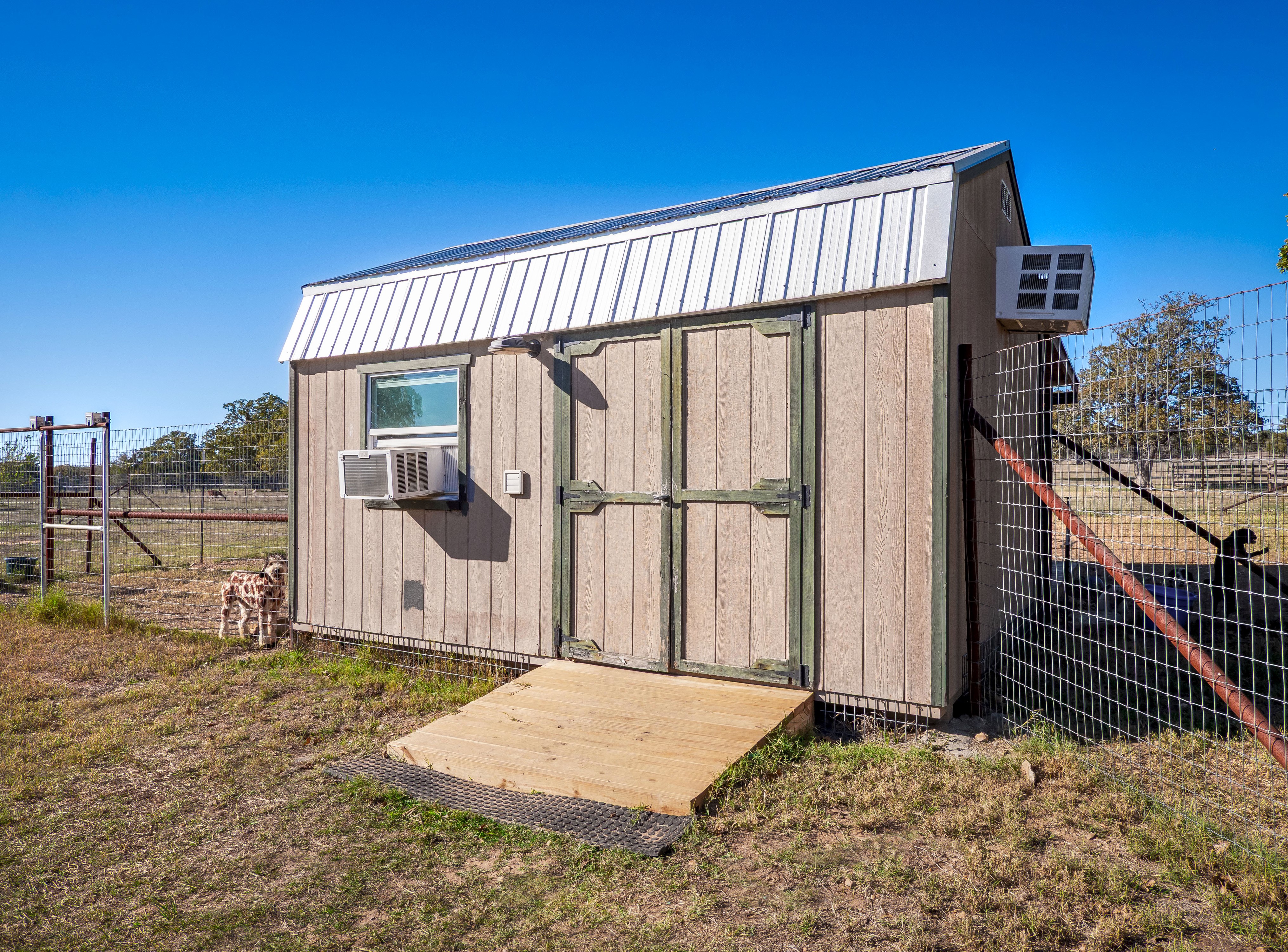 Well set up for animal lovers and operations, the ranch features 12 existing kennels across multiple structures, with the ability to reestablish up to 20 total kennels. One of the large kennel buildings has been repurposed as an indoor training and exercise facility, giving you year-round functionality. A dedicated office building, RV hookups, two barns, a chicken coop, cross-fencing for livestock, a tack shed, a carport, and various storage and open-frame structures round out the working improvements.
