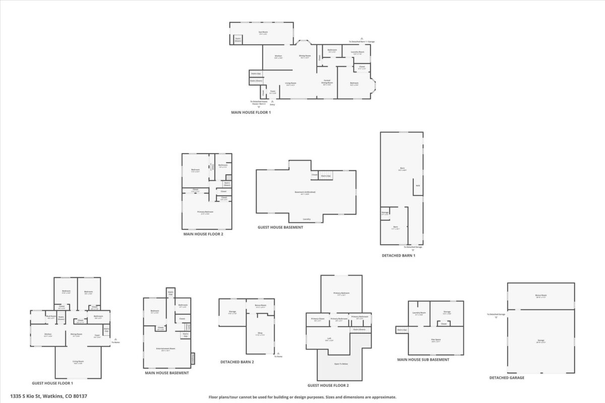 Welcome to 1335 South Kio Street in Watkins, CO, a one-of-a-kind opportunity to own a fully operational pet care and equestrian property just minutes from DIA. This 39-acre estate blends rural tranquility with a well-established, turnkey business once home to the renowned DIA Bark Away, a top-rated dog boarding and grooming facility praised for its exceptional care and loyal clientele. The property features two custom-built kennel outbuildings thoughtfully designed for professional dog care, including heated interiors, secure indoor/outdoor runs, grooming stations, wash bays, and ample storage. A third kennel building offers space for expansion, training services, or specialized operations. Known for catering to pets with separation anxiety and special needs, the facility built a reputation for its individualized attention, consistent five-star reviews, and high demand from DIA-bound travelers. In addition to the thriving pet care infrastructure, the property includes two well-appointed residences. The main home is a spacious 4-bedroom, 3-bath split-level with a sunroom and detached 4-car garage, ideal for owners, caretakers, or managers. A separate 3-bedroom, 2-bath guest house with a loft and unfinished basement provides added versatility for rental income, multigenerational living, or staff accommodations. Each home is served by its own private well and septic system. Equestrian amenities include two barns, large lean-tos for equipment and hay storage, fenced pastures, and plenty of open land suitable for grazing, riding, or additional development. Located near E-470, I-70, and DIA, this property is ideal for animal lovers, business owners, or investors seeking a unique live/work setup. Sale includes real estate, infrastructure, equipment, and the legacy of a respected pet care brand. Square Footage and bedroom/bathroom count is a combination of both homes.