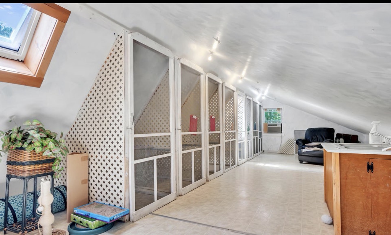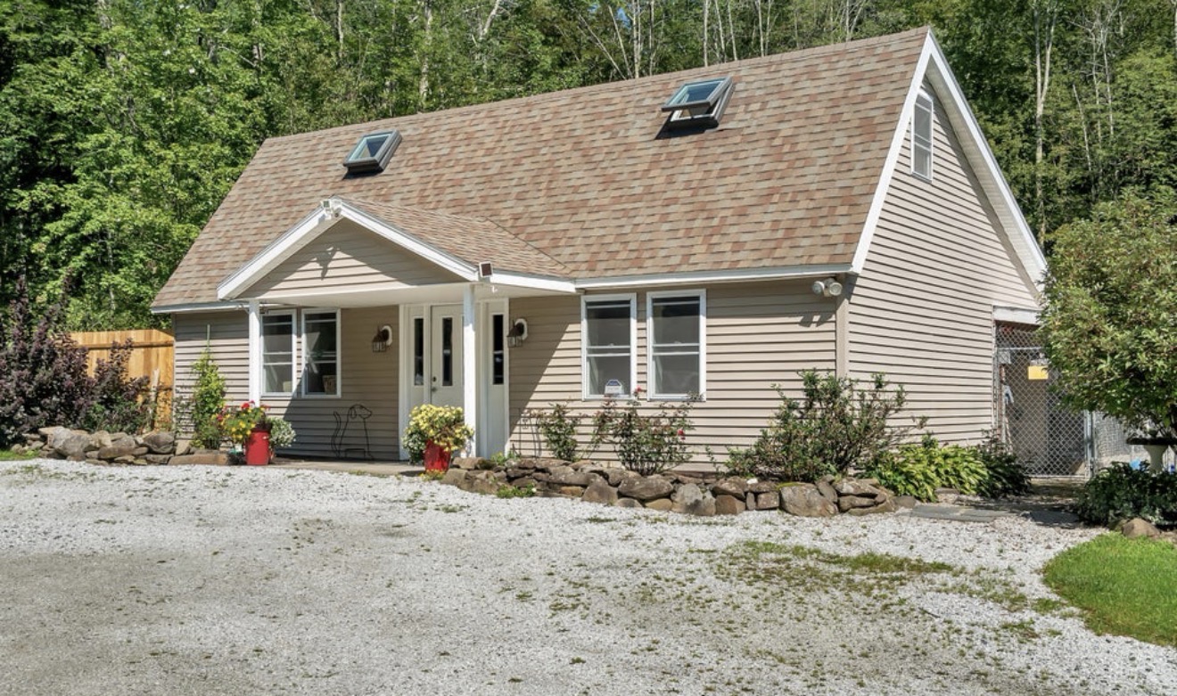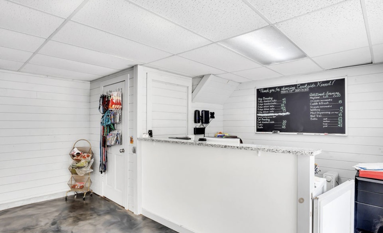 The working pet boarding facility offers approximately 2,800 sq ft and has been successfully operating since at least 1980. The kennel features 31 indoor/outdoor runs, 7 cat suites, and 4 luxury dog suites, with capacity for multiple dogs per run and an unlimited dog permit issued through the local municipality. The special permit conveys with the sale, provided the buyer continues the permitted use within 12 months. The facility includes in-floor drains, retail space, a training room, forced-air heat (oil or wood furnace with electric blower), window air conditioning, and radiant heat in select runs. All equipment, inventory, and client database convey. Financials are available, with NDA. The residential home is a beautifully updated 3-bedroom, 3.5-bath residence offering a flexible layout and in-law or secondary suite potential on the lower level. Enjoy an updated kitchen and bathrooms, spacious living areas, and a wrap-around porch overlooking the creek, creating a peaceful indoor-outdoor living experience.