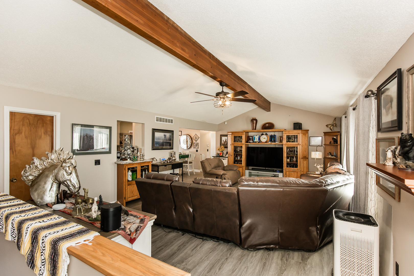The property is thoughtfully improved for both business and residential use. The ranch-style home features 4 bedrooms, 2 full baths, a finished basement, and an attached 2-car garage, with extensive updates including new vinyl flooring, cabinets, countertops, newer HVAC and water heater, and a brand-new roof installed in 2025. Additional lifestyle amenities include a hot tub, gazebo, walk-in pantry, and spacious living areas. Complementing the residence is a separate, fully finished shop and event space, fully insulated and equipped with finished flooring, electrical, WiFi, lounge areas, and a mini-split heating and cooling system – offering flexible use for gatherings, storage, or business-related functions.