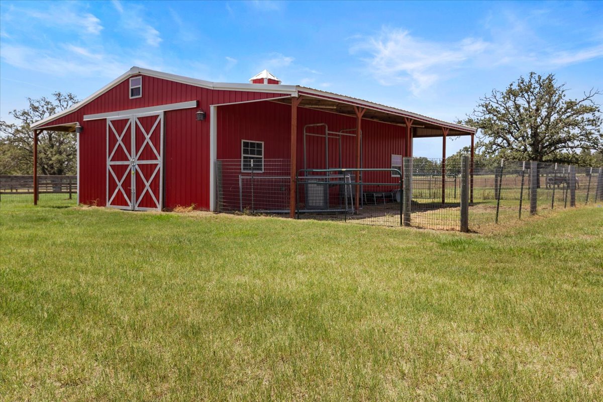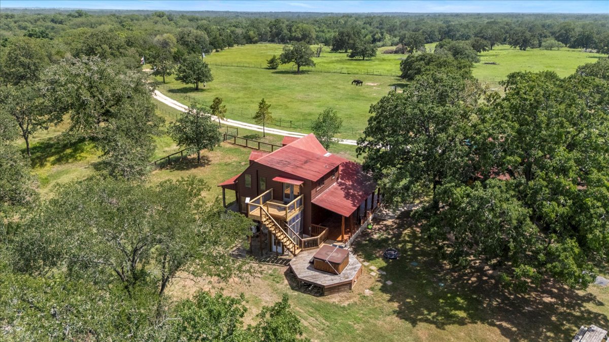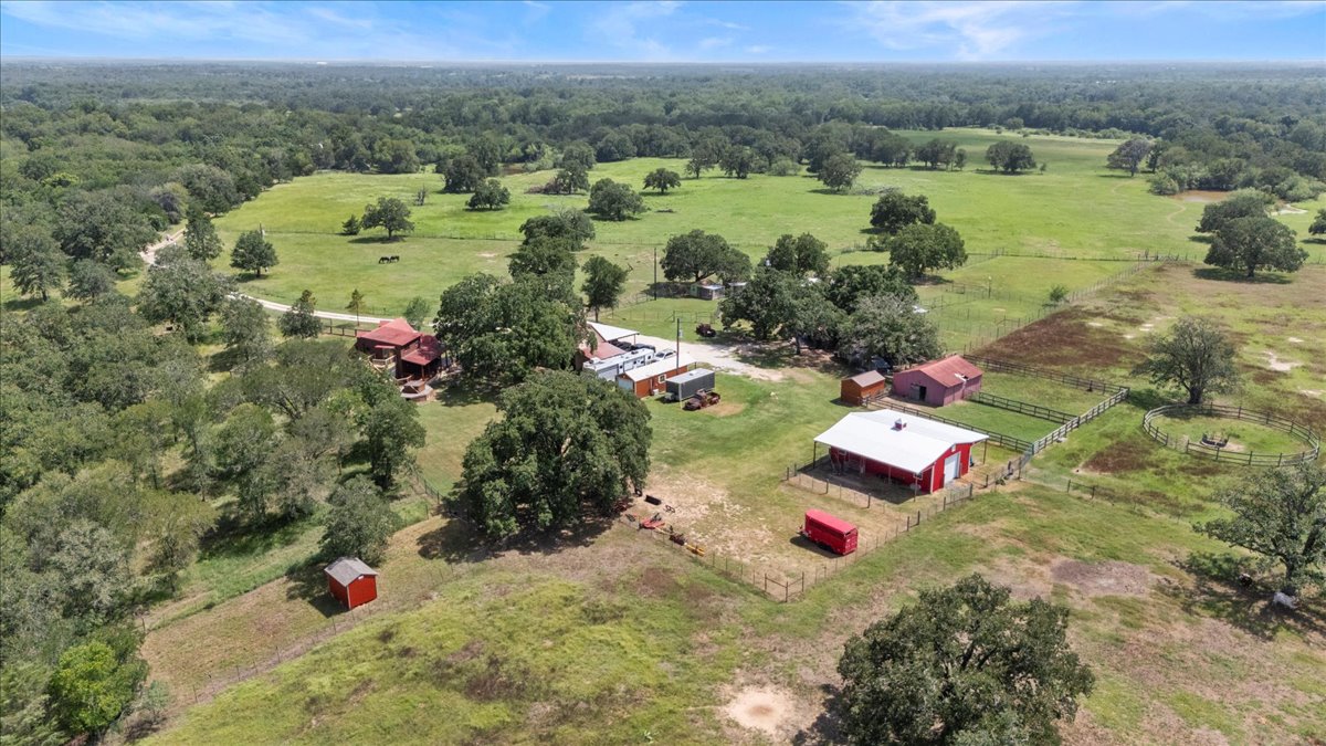 Additional features include a dedicated office building, RV hookups, a chicken coop, two barns, cross-fencing for livestock, a tack shed, a carport, and various storage and open frame structures. The land consists of open pasture and wooded areas with a wet-weather creek and shared access to a pond. Utilities include well water and four electric services. The property benefits from ag exemptions and is located six miles from Downtown Bastrop and under 40 minutes from Austin, offering versatility for both users and investors.