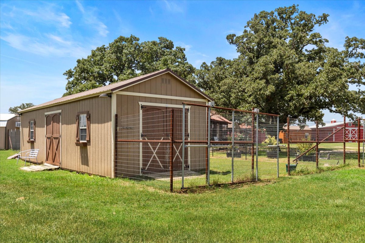 This multifaceted estate spans 42.52 acres and blends residential, agricultural, and commercial elements. Improvements include a 1,468 square foot main home, a 500 square foot guest cabin, additional guest quarters with an ensuite bath attached to the carport, and a finished upper-level room above the carport currently used for storage. The property also features twelve kennels across multiple structures, with potential to reestablish up to twenty total kennels. One large kennel building currently serves as an indoor training and exercise facility.