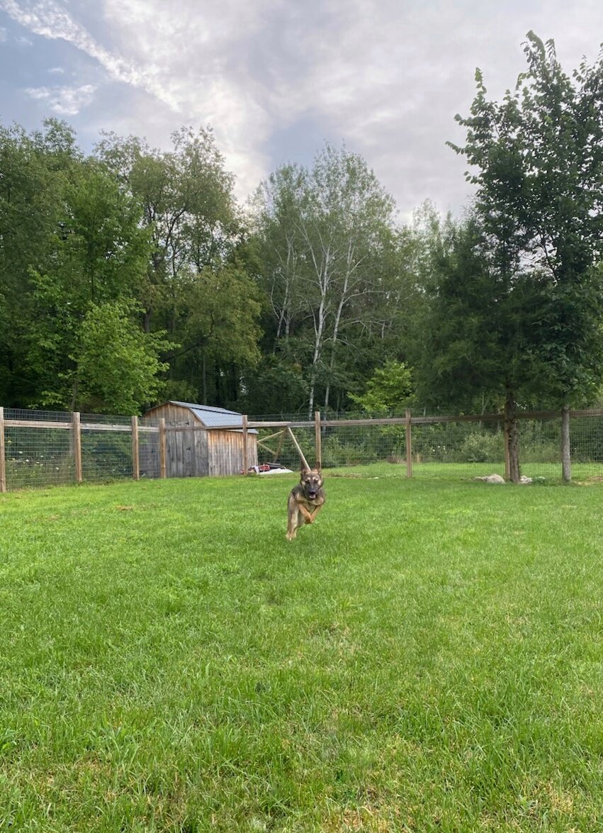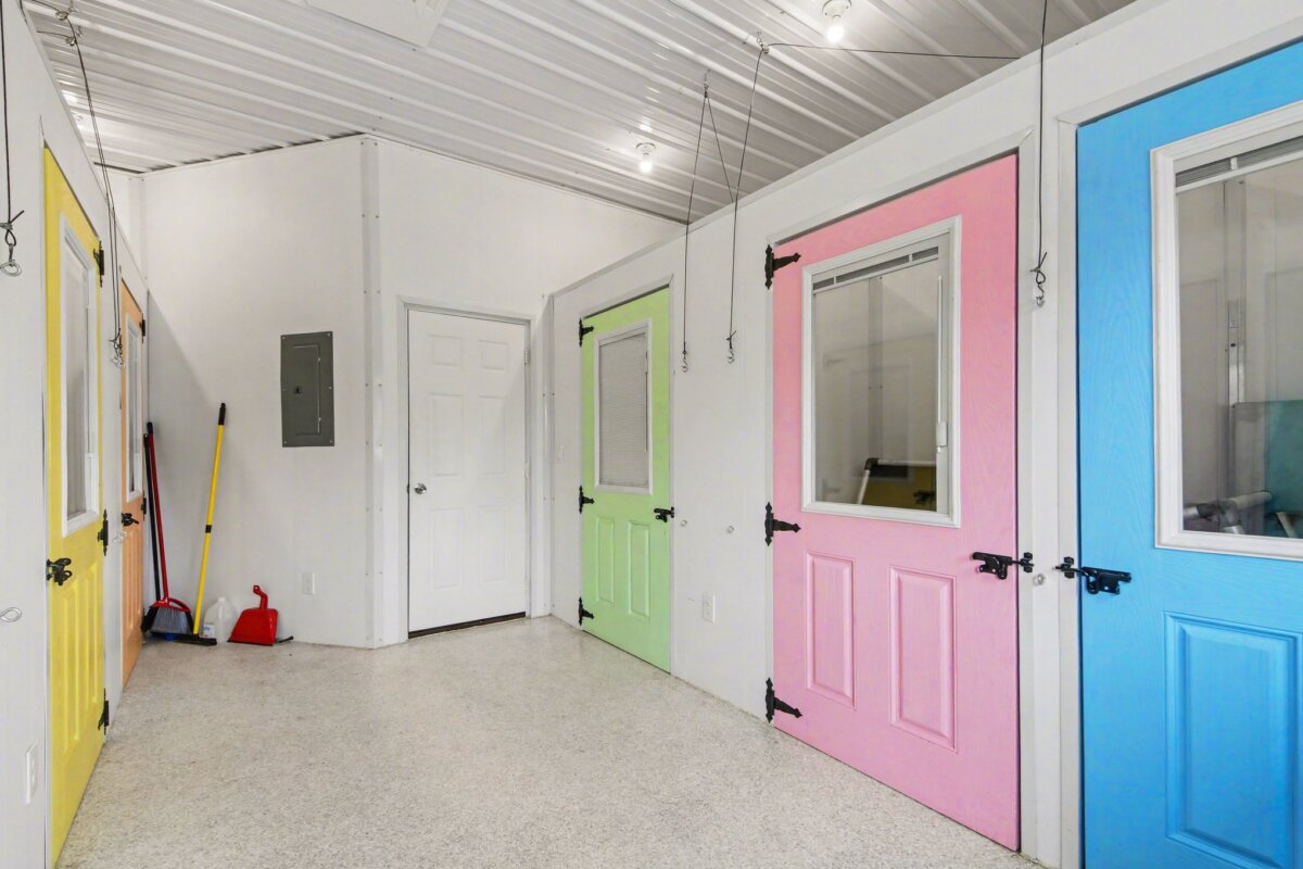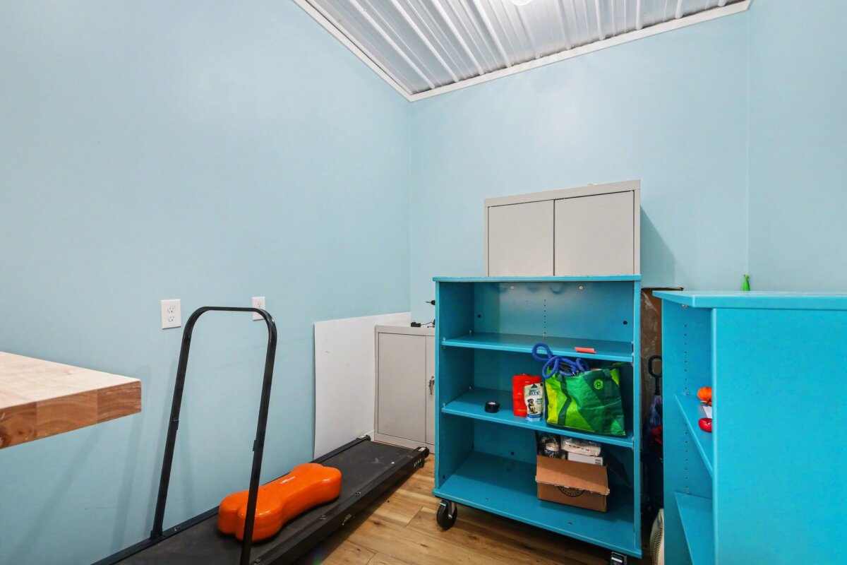 An additional 10×10 room with exterior access provides flexible use. Expansion potential exists in the brown building. A large indoor training area (garage), two fenced dog yards, and the property’s extensive trail system offer ample room for exercise, training, and exploration.