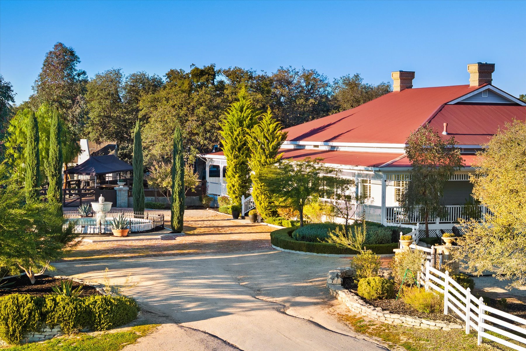 Surrounded by a park-like landscape of 121 mature oak trees, this exceptional 3,467 sq. ft. Australian Queenslander-style residence sits on more than nine stunning acres overlooking the Salinas Valley, rolling hills, and Paso Robles wine country. Offering rare privacy while remaining just 3.5 miles from downtown Paso Robles, minutes from the 101 freeway, and 25 minutes from the beaches, the estate delivers a lifestyle that feels real, grounded, and deeply connected to the land—perfect for morning coffee on the veranda, exploring the property, or envisioning space for horses and future outdoor uses. A circular driveway framed by towering oaks and a custom fountain creates a memorable arrival, leading to approximately 2,300 sq. ft. of covered veranda ideally positioned for watching breathtaking sunrises and unforgettable sunsets. Inside, the home features repurposed wood flooring, 8-inch baseboards, and 10-foot ceilings, creating a warm, refined atmosphere filled with natural light and authentic character. The grand living room opens through three sets of paned glass doors to peaceful oak-filled views. while a spectacular 2,500-bottle walnut wine room and adjacent study elevate both entertaining and daily living. The chef’s kitchen—anchored by birch cabinetry, walnut/marble/granite countertops, a Sub-Zero refrigerator, and a Viking range and hood—flows seamlessly to the dining room and expansive veranda, making every meal part of the wine-country lifestyle. The private owner’s suite features a cozy fireplace, vinyl plank ceiling detail, 12-inch crown molding, and a spa-inspired bath with travertine finishes, a jetted soaking tub, and a generous walk-in closet. A separate guest wing offers three bedrooms, a central bonus room, and a Jack-and-Jill bath, ideal for extended family, guests, or vacation-rental income. With usable land, equestrian potential, and endless lifestyle possibilities—combined with a fully turnkey, high-demand dog boarding business on-site—this property is as functional as it is beautiful, creating one of the Central Coast’s most extraordinary residential and income-producing estates.